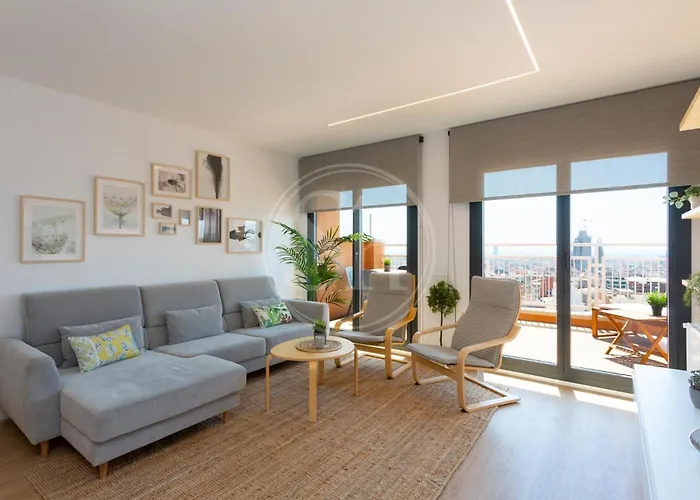 The spacious Maravilloso Alojamiento Con Vistas A Barcelona apartment overlooks the city and is situated merely a 5-minute walk from the La Bodega Mediterrania.